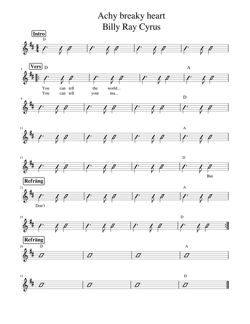 Achy Breaky Heart Sheet Music For Piano Solo Musescore Com
